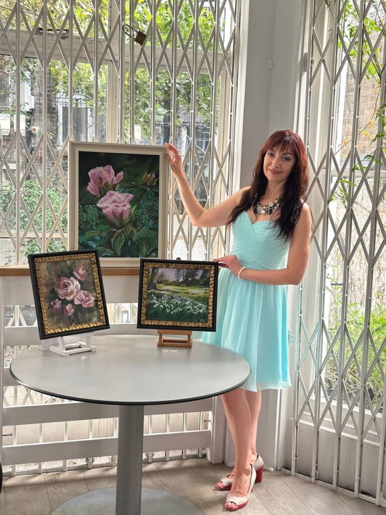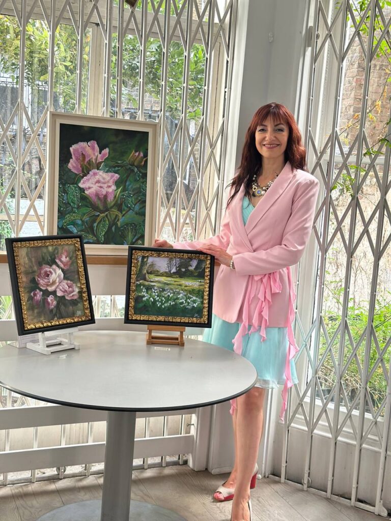 Decorating my cosy home with flowers is one of my passions. Roses are my big love. British roses are a special miracle for me)—their geometry, fragrances, colour type and how they grow up. Their flowering can be observed for almost the whole year! The creation of this piece of art helped me to sort out stress after surgery on my left wrist. This painting is full of healing energy.