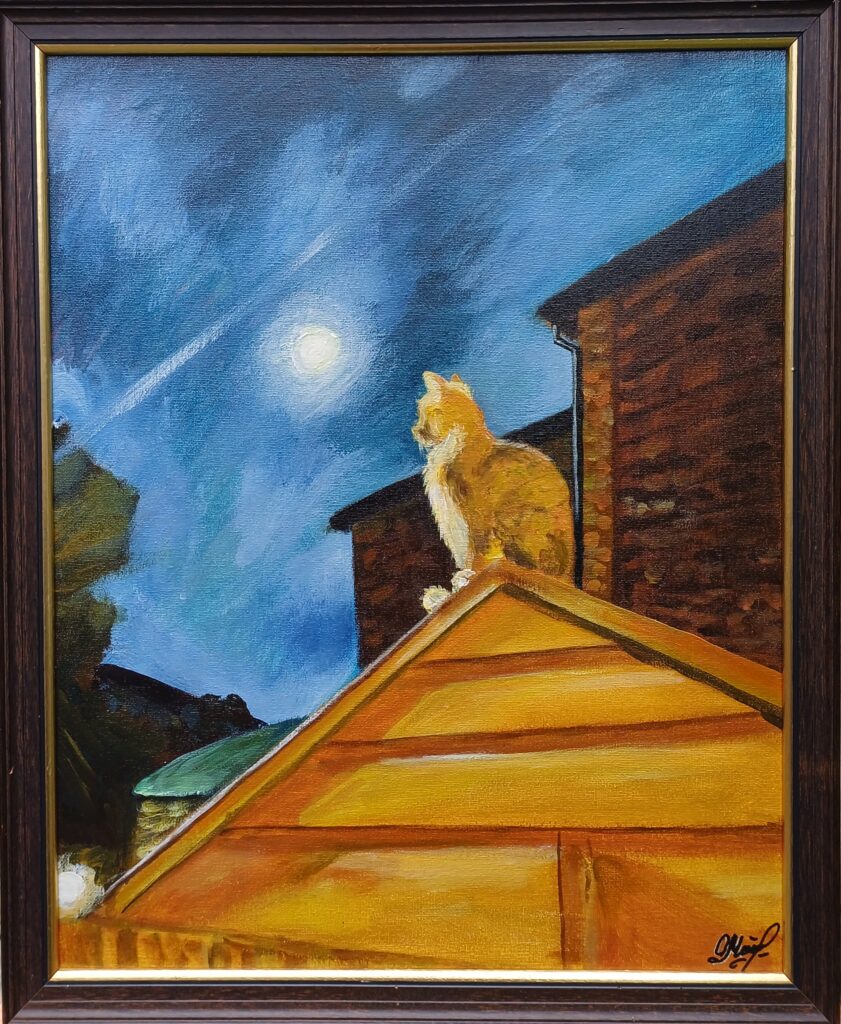 The full Moon (Series: Lovely Pets). Acrylic, Canva Pad. 2024. 20x16x0.4 inches