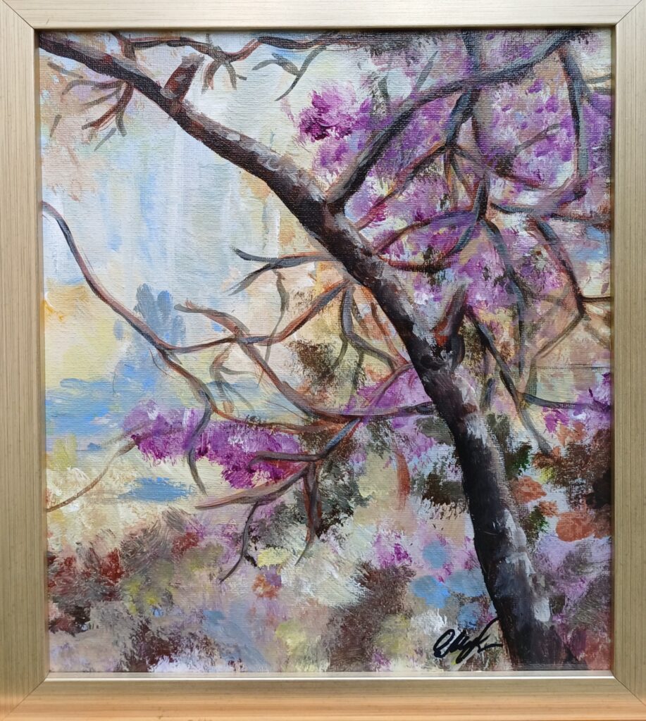 The spring is in your heart. Acrylic, Canva pad. 2024. 23.2x19x1.2 inch. With the grey frame: 59x48x3 cm